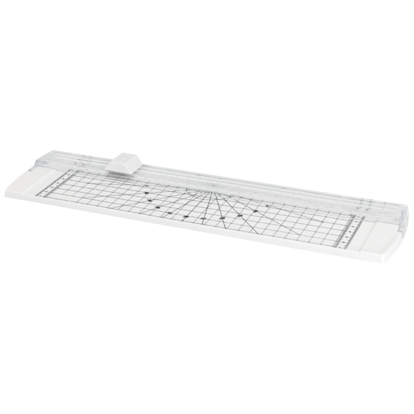 - Rulleskærerens dimensioner (BxDxH): 352 x 95 x 24 mm. Skærer op til 5 ark ad gangen.