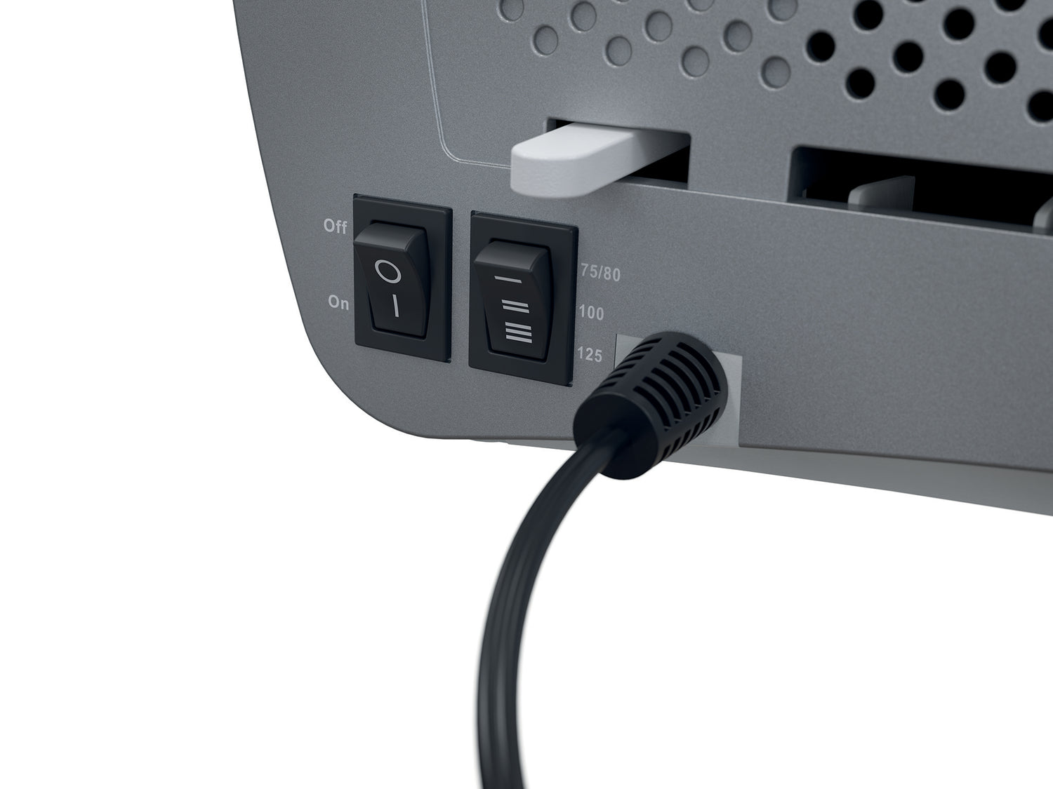 - SMART status LED: lyser rødt under opvarmning og bliver grøn med et lydsignal, når lamineringsmaskinen er klar til brug.