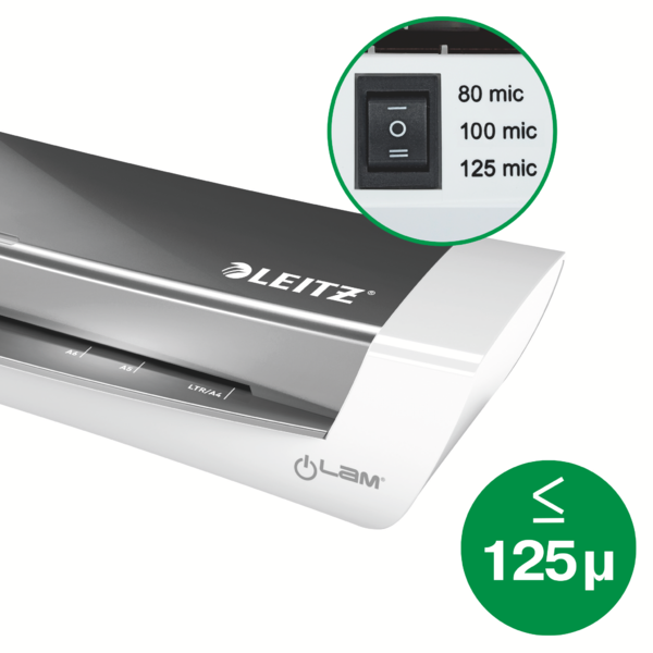 - Tager ca. 60 sekunder at laminere et 80 micron A4 ark