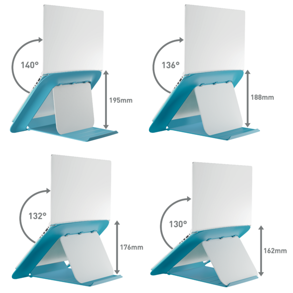 - Velegnet til laptops fra 13" til 17", MacBooks, der åbner til maksimalt 135 grader, kan bruges i højdeindstillingen 162 mm og 176 mm