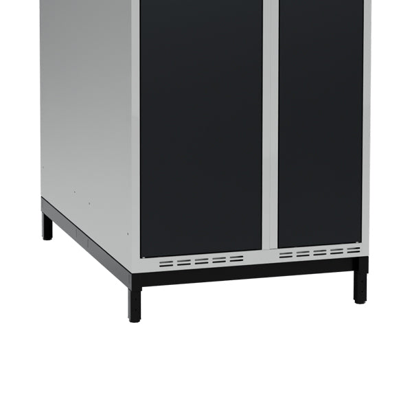 Benrammen er tilpasset skabe med en dybde på 550 mm og en bredde på 700 mm, beregnet til to skabe placeret ryg mod ryg.