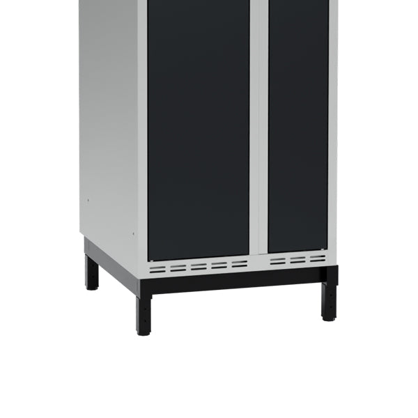 Understellet er tilpasset skabe med en dybde på 550 mm og en bredde på 500 mm, og er beregnet til ét skab placeret i en enkelt række.