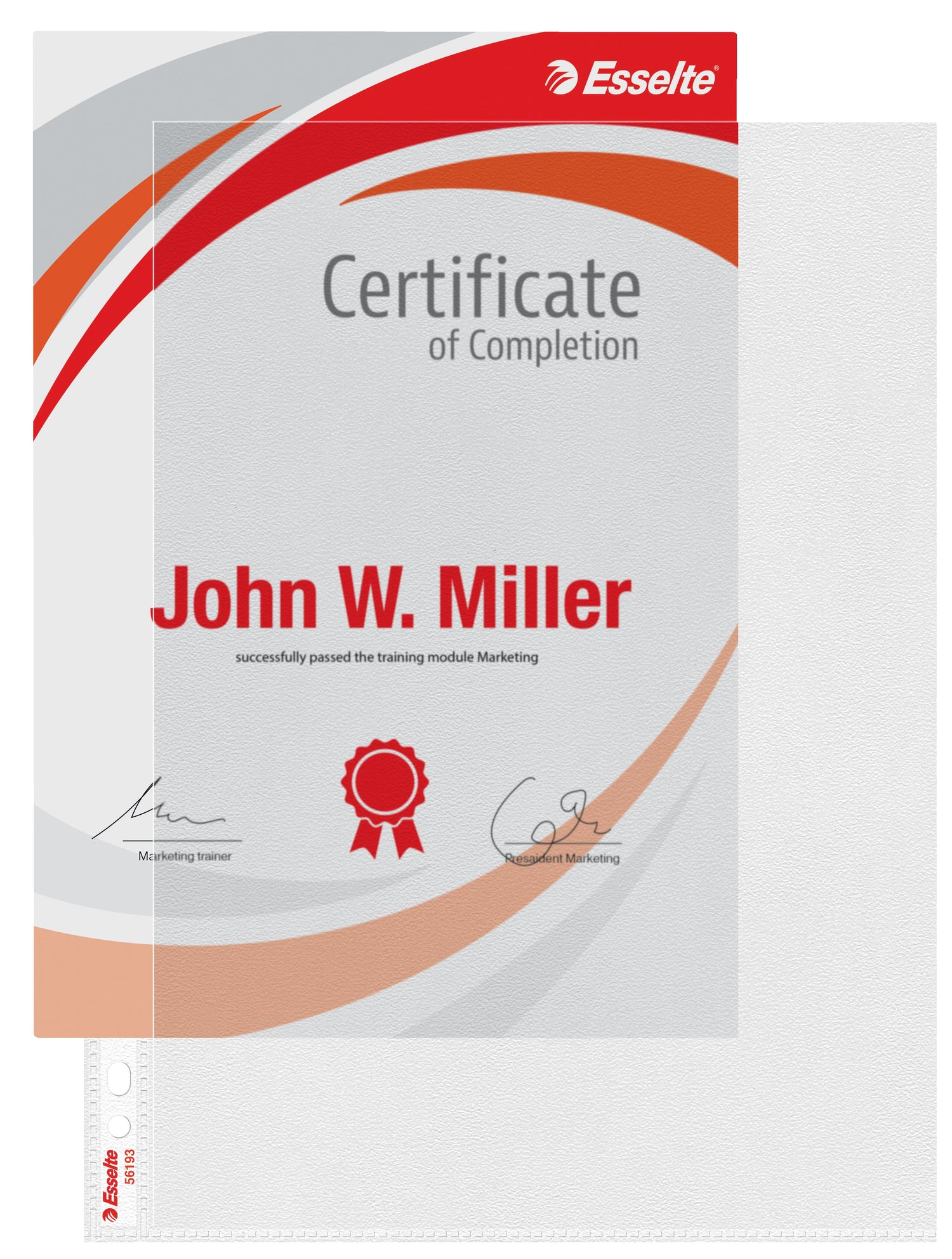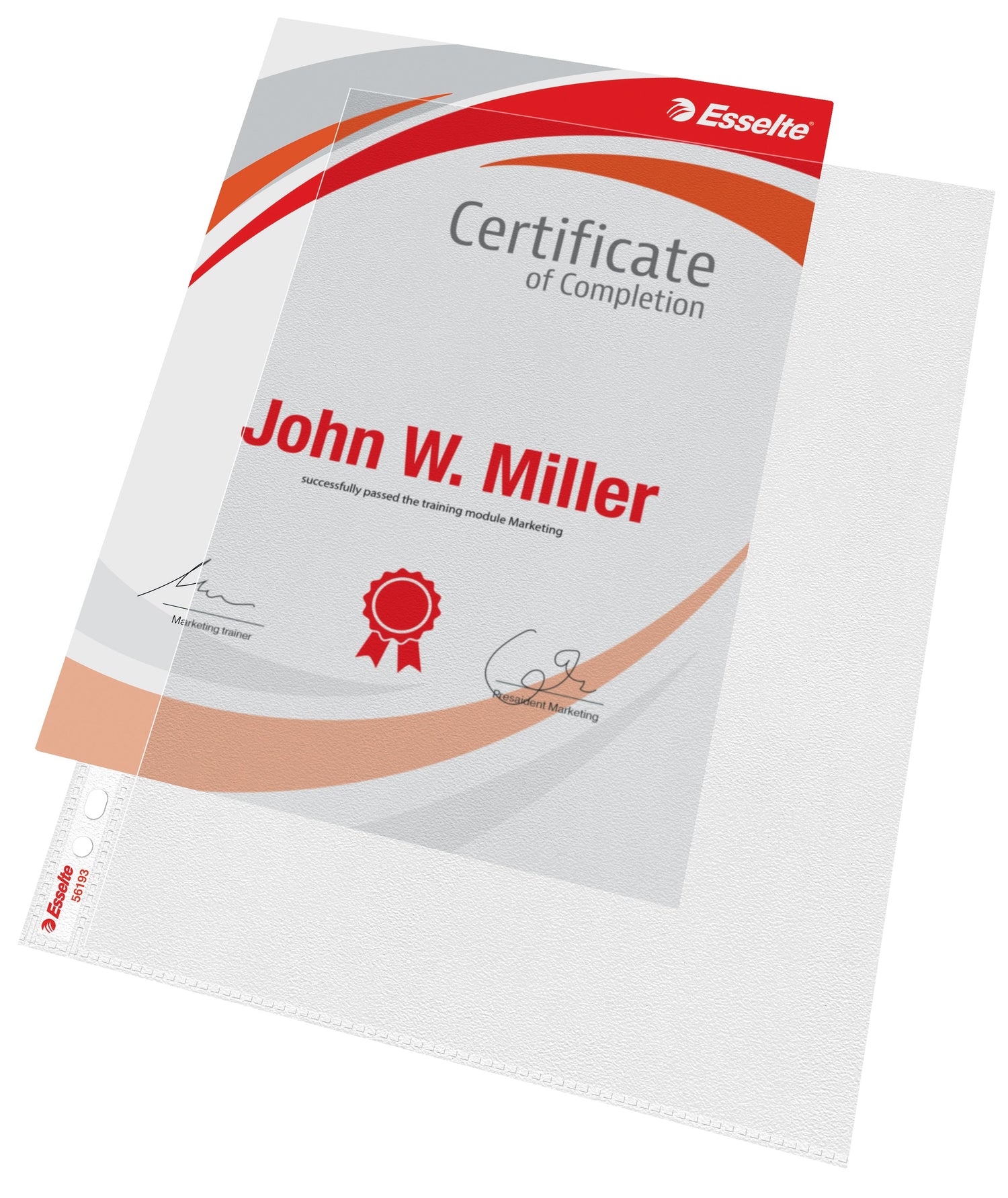 Plastlomme i A4, præget 0.115 mm af recirkuleret PP folie, copysafe Top og venstre side åbning m. 11 huller til universal brug.