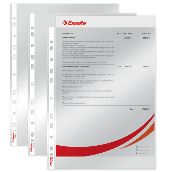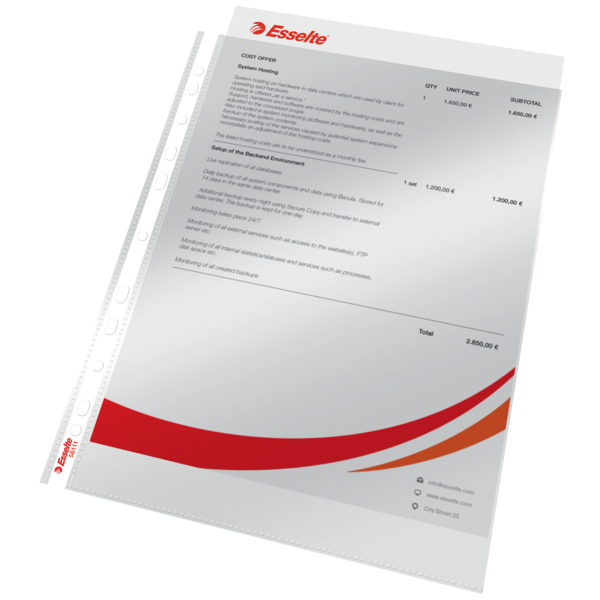 Kvalitetslomme til hverdags brug. Multi-hulningen giver nem opbevaring af dokumenter i brev- og ringordnere