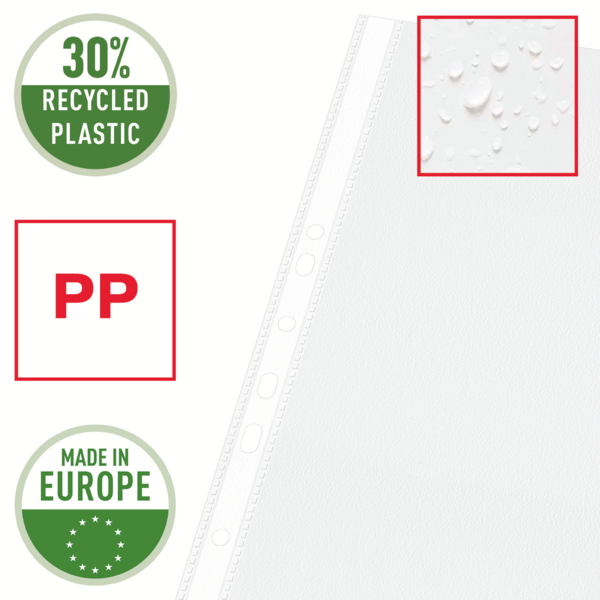 Lommer med en klar, mat finish, der er ideelle til opbevaring af tegninger, planer og plakater i større format. Åbnes i toppen for nem adgang til dokumenter uden at løsne mappemekanismen. Copy safe og syrefrit materiale sikrer langvarig beskyttelse af dokumenterne. Fremstillet af PP-plast (polypropylen) med 30 % præ-consumer indhold, 100% recirkulerbar.