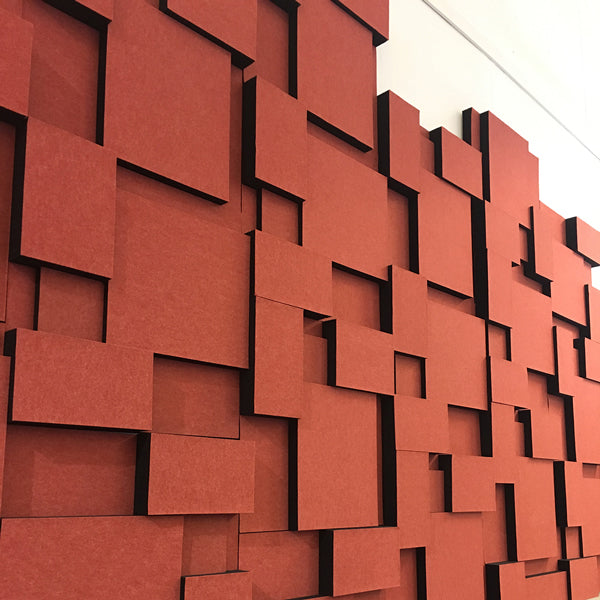 Tekstilet er valgt, ud fra dets evne til at lade lyden passere gennem stoffet til akustikkpladen, således at maksimal lydabsorption opnås. Med sit specielle formsprog, bidrager Lydabsortbent Nivå EcoSUND til et helt eget udtryk i dine lokaler. Panelerne som er ca 60 x 60 cm kan varieres for at lave mønstre i ulige farver; ved at kombinere de tre tilgængelige kernematerialer, måske nogle paneler lamineret med tekstilet Hush i forskellige farver - eller begge i kombination. Absorbenternes tykkelse varierer og hvert panel består af rektangler og kvadrater i tykkelse 30 til 90 mm. Ved hælp af den velour beklædte bagside fæstes panelerne let til væggen, ved hjælp af de medfølgende beslag. Det unikke kernemateriale EcoSUND er udviklet med tanke både på arbejdsmiljø og vore omgivelser - produceret i recirkuleret PET og godkendt iht OEKO-TEX standard 100. Det er helt fri for lim/bindemiddel og afgiver ingen gasser. Det afgiver heller ikke allergifremkallende fibre.