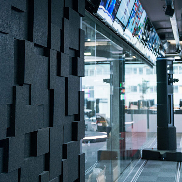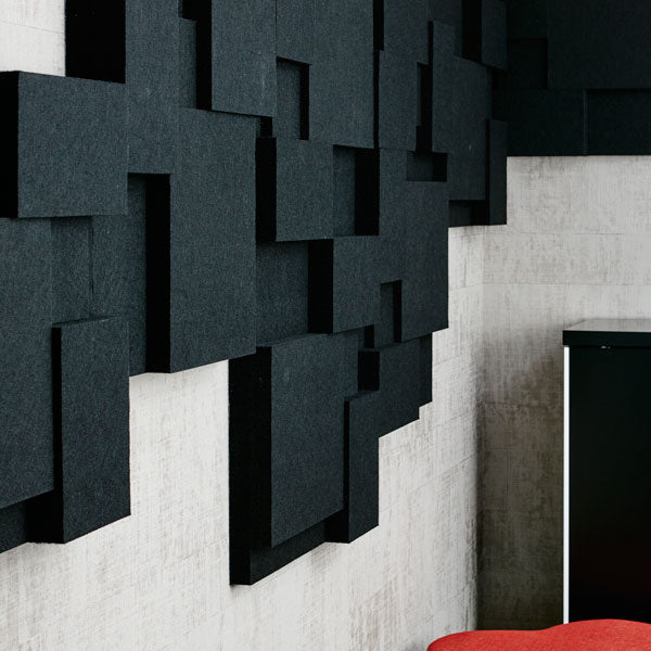 Lydabsortbent Nivå EcoSUND - med sort kernemateriale uden tekstil-laminering - er en lydabsorbent som forbedrer akustikken betydelig. Med sit specielle formsprog, bidrager Lydabsortbent Nivå EcoSUND til et helt eget udtryk i dine lokaler.