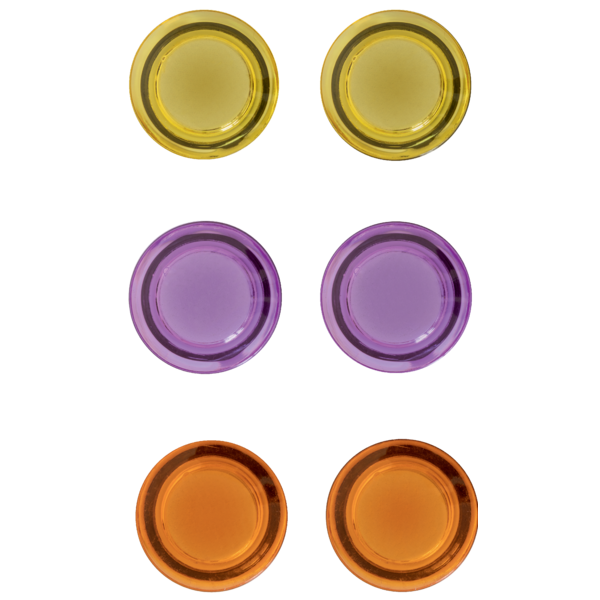 - Pakke med 6 assorterede magneter (2 x gul, 2 x lilla, 2 x orange)