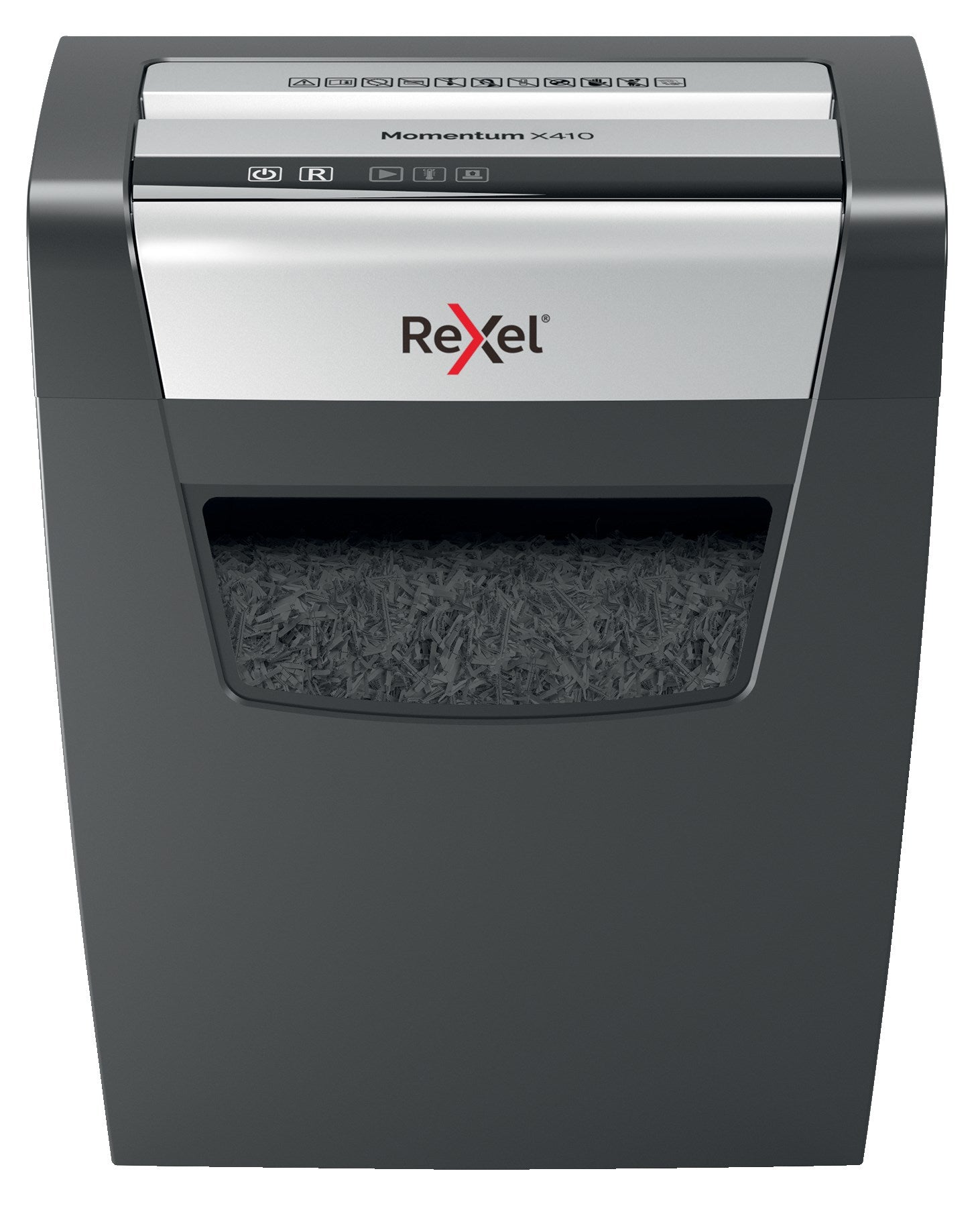 Kraften til at makulere mere! Rexel Momentum X410 makuleringsmaskine makulerer op til 10 ark på en gang med 6 minutters konstant makuleringstid. Ideel til hjemmebrug. X410 er med antiblokeringsteknologi, der garanterer uafbrudt makulering. P4, krydsmakulering i 4x30 mm stykker. Stille med intuitive touch kontrolknapper, der giver enkel betjening. Med 23 liter beholder med 225 A4 ark kapacitet. - Makulerer op til 10 ark papir på en gang - Højt sikkerhedsniveau med P4, krydsmakulering 4x30 mm stykker - Makuler flere papirer i en længere periode med 6 minutters konstant drifttid - Antiblokeringsteknologi - makulator stopper automatisk og tilbagefører papirer, når der indsættes for mange papirer - Makulerer let adskillige dokumenter - også med hæfteklammer og papirclips i hjørnerne - Simple intuitive touch kontrolknapper giver nem betjening. Makulator kan låses, når den ikke er overvåget - En stor 23 liter beholder med kapacitet på 225 A4 ark - Stille drift så minimal forstyrrels