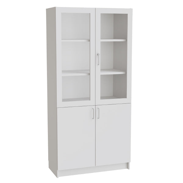 Disse materialeskabe med glasdøre leveres færdigmonterede og er limet og sammenpresset for en holdbar konstruktion med korrekte diagonaler.