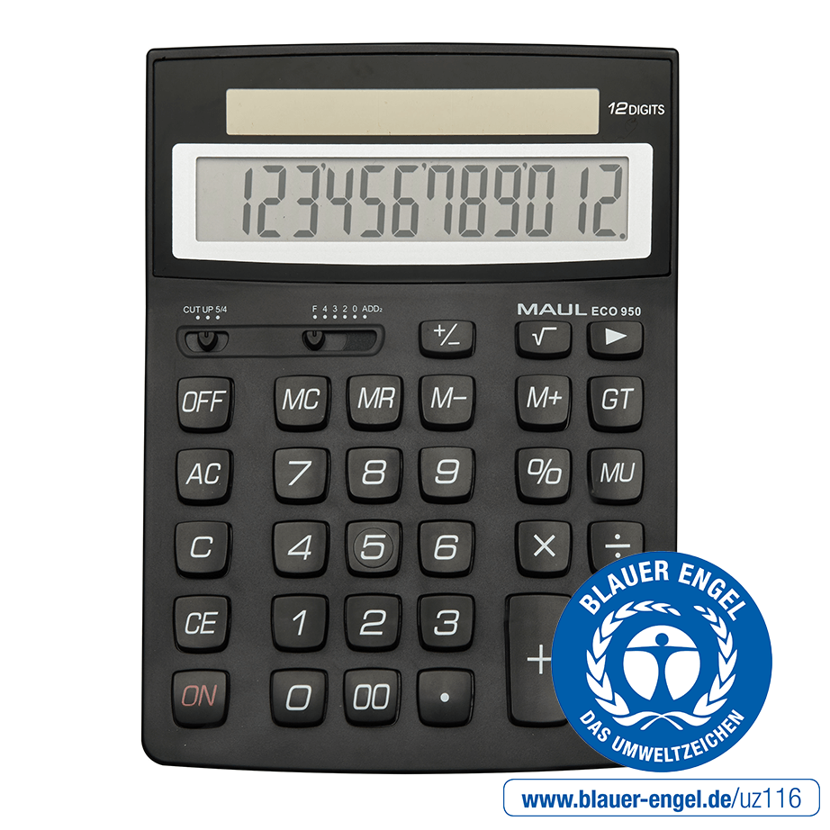 Med MAULs velkendte kvalitet og en garanti på hele 5 år er ECO 950-regnemaskinen et pålideligt valg til både kontor og hjem.