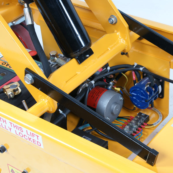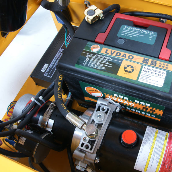 Løftebordet har en elektrisk løftemotor med 700W effekt og to 12V / 22Ah batterier med indbygget oplader.