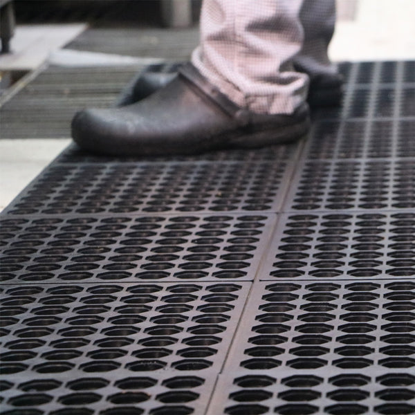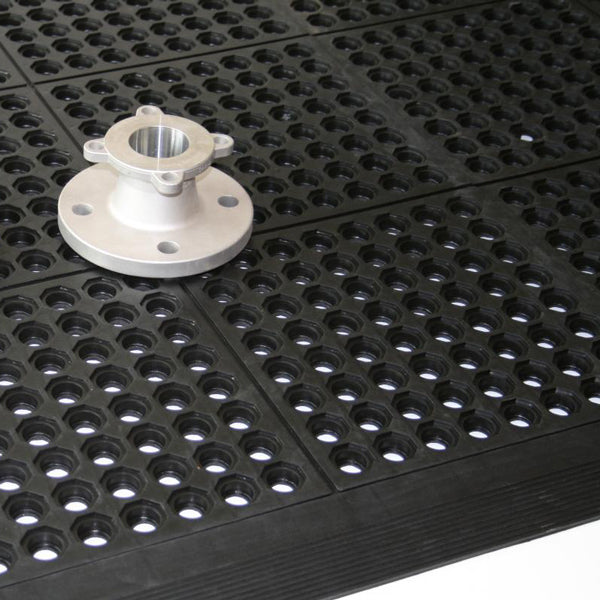 Modulmåtte Dren er en gummimåtte med rigtig gode aflastningsegenskaber, holdbarhed og dræning på undersiden. Modulmåtten har to sider, der er hun og to sider, der er han. Tilpasses nemt det område den skal placeres på ved at forbinde flere måtter sammen. Velegnet til alle industrielle arbejdspladser med enten tørre miljøer eller steder udsat for noget vand- og oliespild.