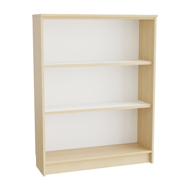 Bogreol i birk laminat, med størrelse (h x b x b) 1300 x 1000 x 300 mm. Bogreolen har to flytbare hyldeplan. Leveres færdig monteret og er standard med hvid bagplade og hvide hylder.Specifikationer: