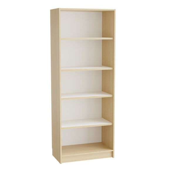 Bogreol i birk laminat, med størrelse (h x b x b) 2100 x 800 x 450 mm. Bogreolen har tre flytbare og et fast hyldeplan. Leveres færdig monteret og er standard med hvid bagplade og hvide hylder.Specifikationer: