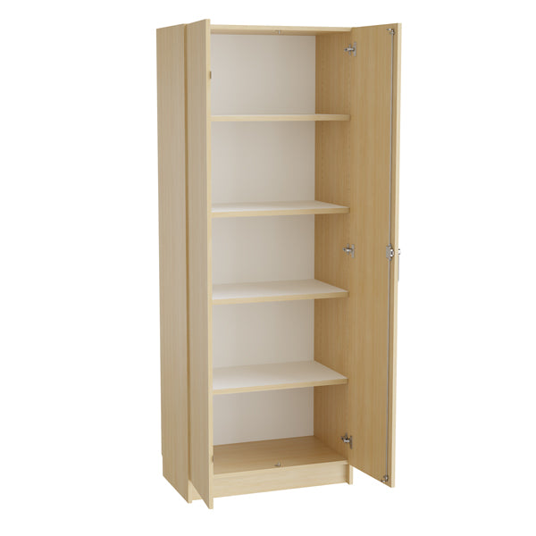 Mora Højskab, i birk laminat udførelse med døre i birk laminat. Størrelsen på højskabet er (h x b x d) 2100 x 800 x 470 mm. Højskabet har to faste og tre flytbare hylder. Dørene leveres med cylinderlås og skabene leveres færdig monteret, inkl. sokkel. 2 stk nøgler pr lås.Specifikationer: