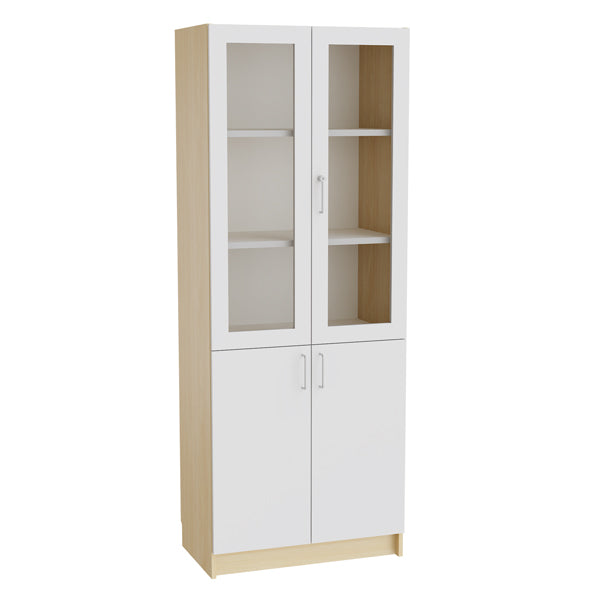 Mora Højskab kombi, i birk laminat udførelse med døre i grå laminat/sikkerhedsglas. Størrelsen på højskabet er (h x b x d) 2100 x 800 x 470 mm. I skabets øverste del er der to flytbare hylder, i nederste del en flytbar hylde. Dørene leveres med cylinderlås og skabene leveres færdig monteret, inkl. sokkel. 2 stk nøgler pr lås.Specifikationer: