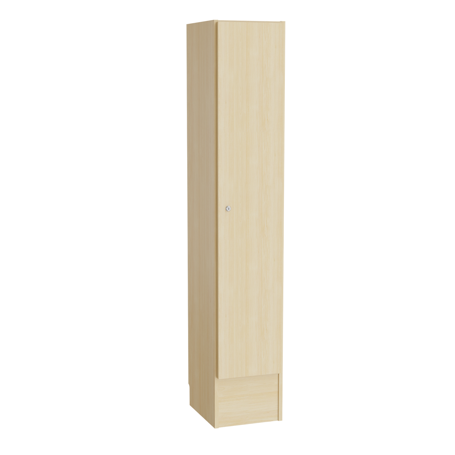 Færdigmonteret personaleskab med 1x1 rum og h x b x d = 1900 x 300 x 550 mm i birk laminat udførelse.