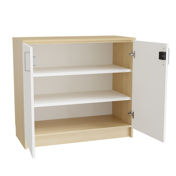 Underskab i birk laminat med hvid laminat døre. Underskabet har størrelse (h x b x d) 910 x 1000 x 470 mm, leveres med RFID system i dørene og har to hyldeplan.Specifikationer: