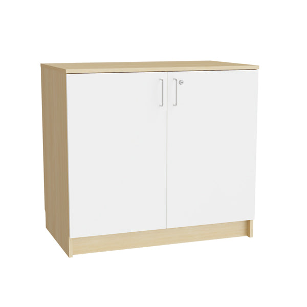 Underskab i birk laminat med hvid laminat døre. Underskabet har størrelse (h x b x d) 910 x 1000 x 600 mm, leveres med cylinderlås ( 2 stk. nøgler) i dørene og har to hyldeplan.Specifikationer: