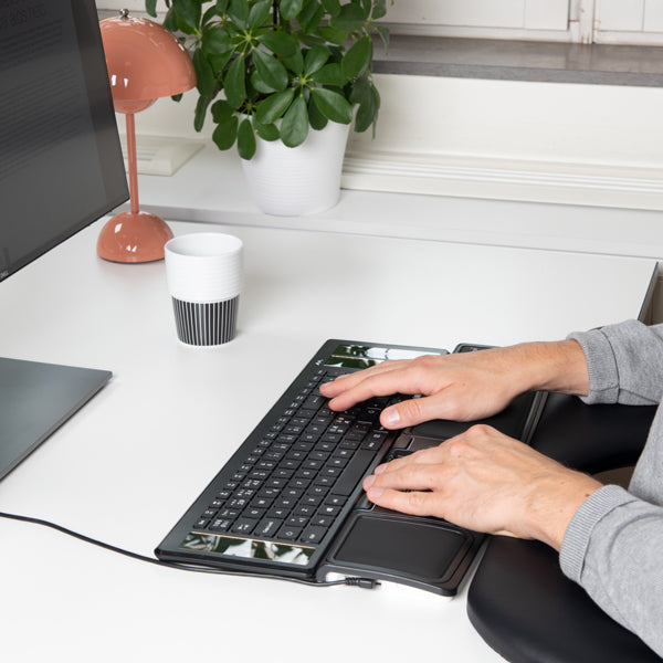 - Blød håndledsstøtte: Den brede og bløde håndledsstøtte giver optimal støtte til håndled og arme, hvilket bidrager til en mere afslappet og skadefri arbejdsdag.