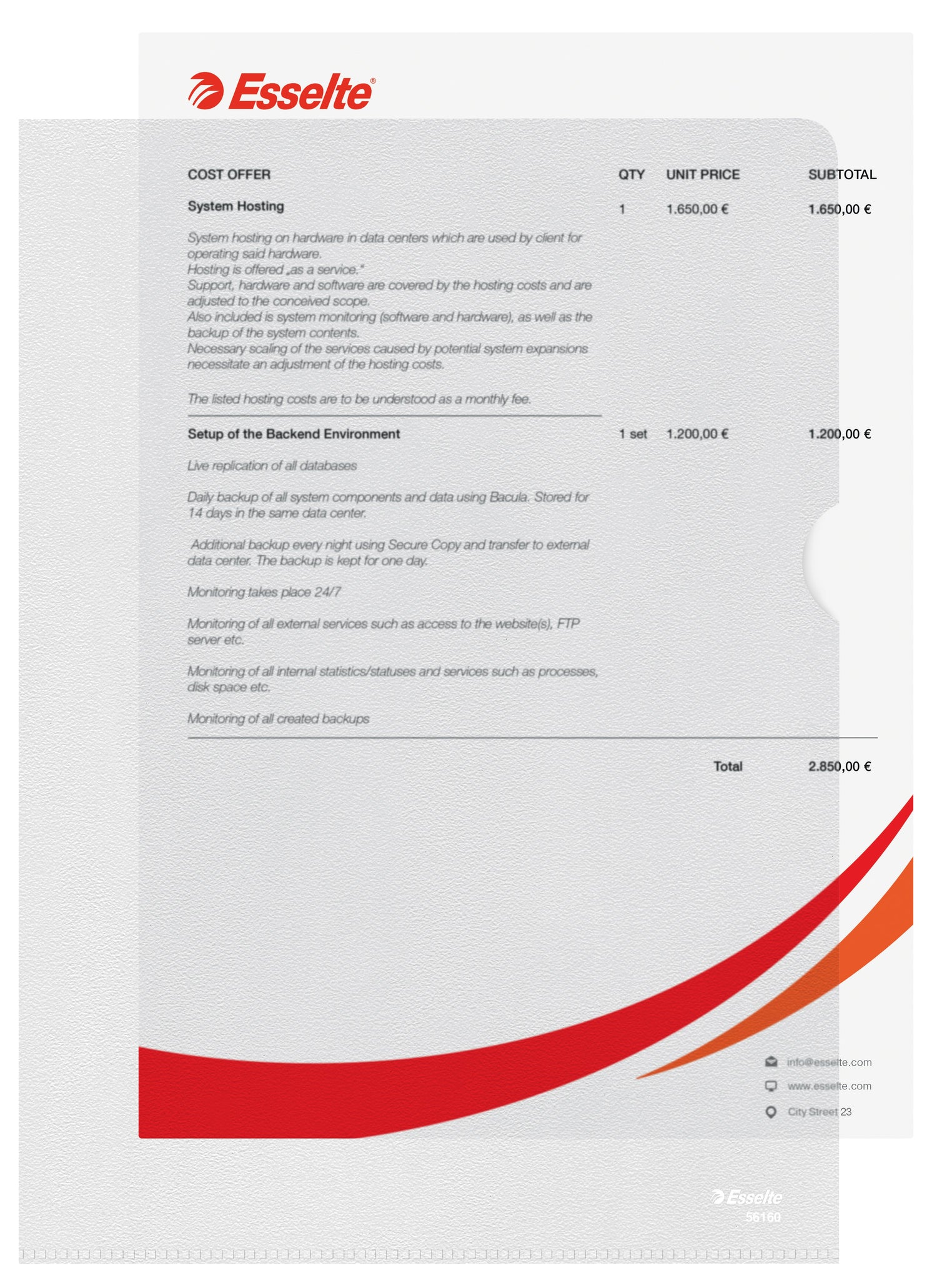 | Produkt | Omslag standard 105my A4 med præg æsk100 |