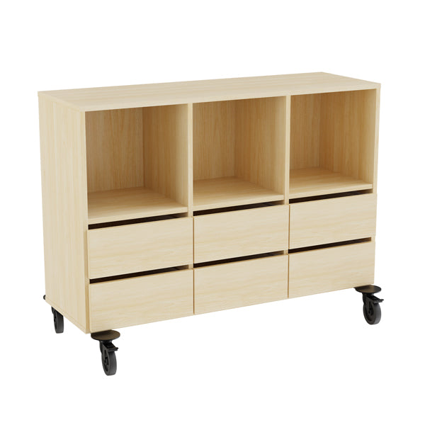 Opbevaring Stig 3x2 rum, 6 skuffer, birk laminat, hjul