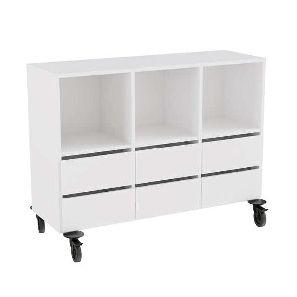 Opbevaring Stig 3x2 rum, 6 skuffer, hvid laminat, hjul