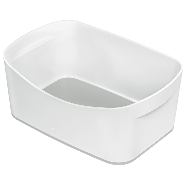 Leitz MyBox opbevaringsbakke kombinerer stil og funktionalitet til både hjem og kontor. Den tofarvede effekt sikrer et elegant udseende, mens det robuste, ridsefaste og vandtætte BPA-fri plastmateriale tilbyder en førsteklasses finish.