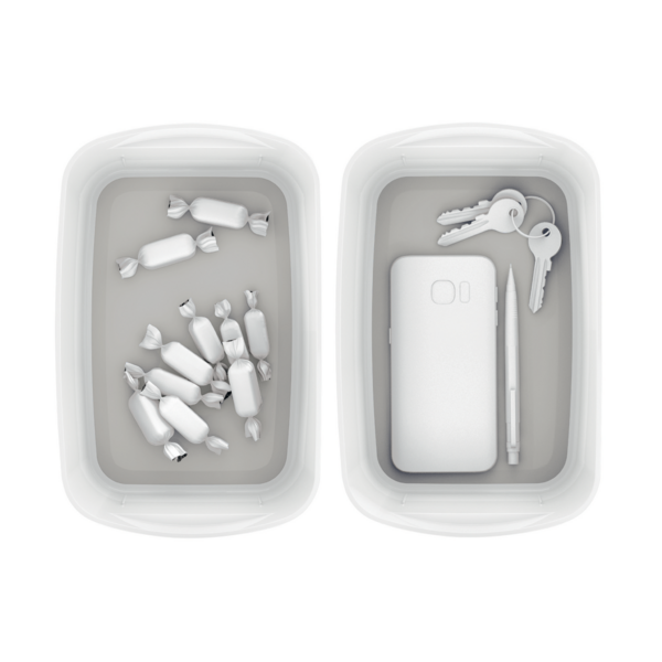 - Stilfuld opbevaringsbakke i to farver til hurtig og nem organisering og smart opbevaring