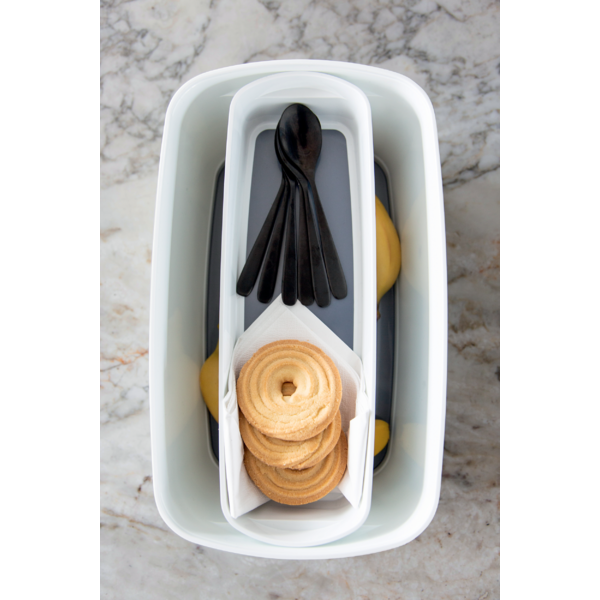 - Lavet i robust, ridseafvisende og vandtæt plastmateriale, der giver et premium udseende. Fødevaregodkendt. BPA fri.