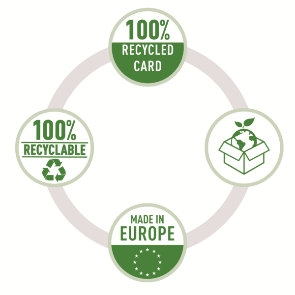 - Lavet af stærkt og holdbart 100% genbrugt, 100% genanvendeligt og FSC-certificeret pap
