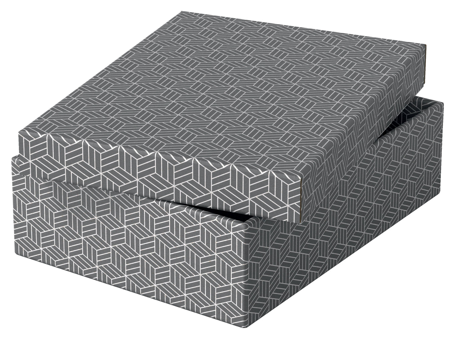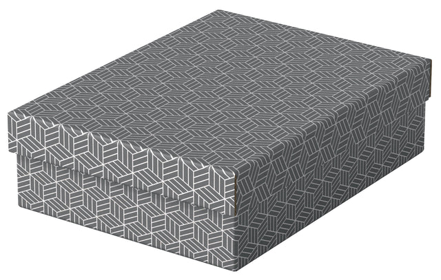 | attribute 1 | Sæt med tre mellemstore opbevaringsbokse i pap med et moderne og stilfuldt geometrisk design |