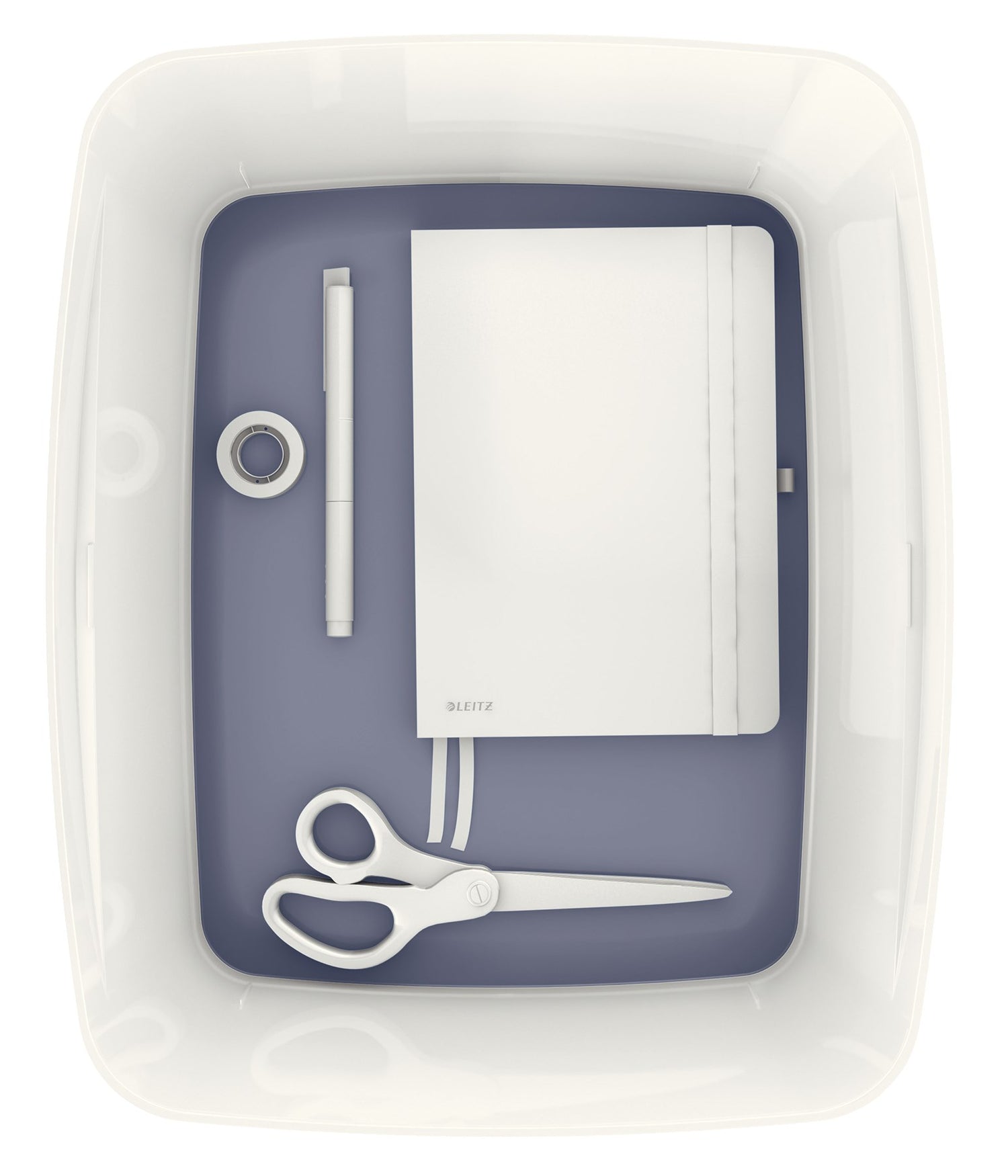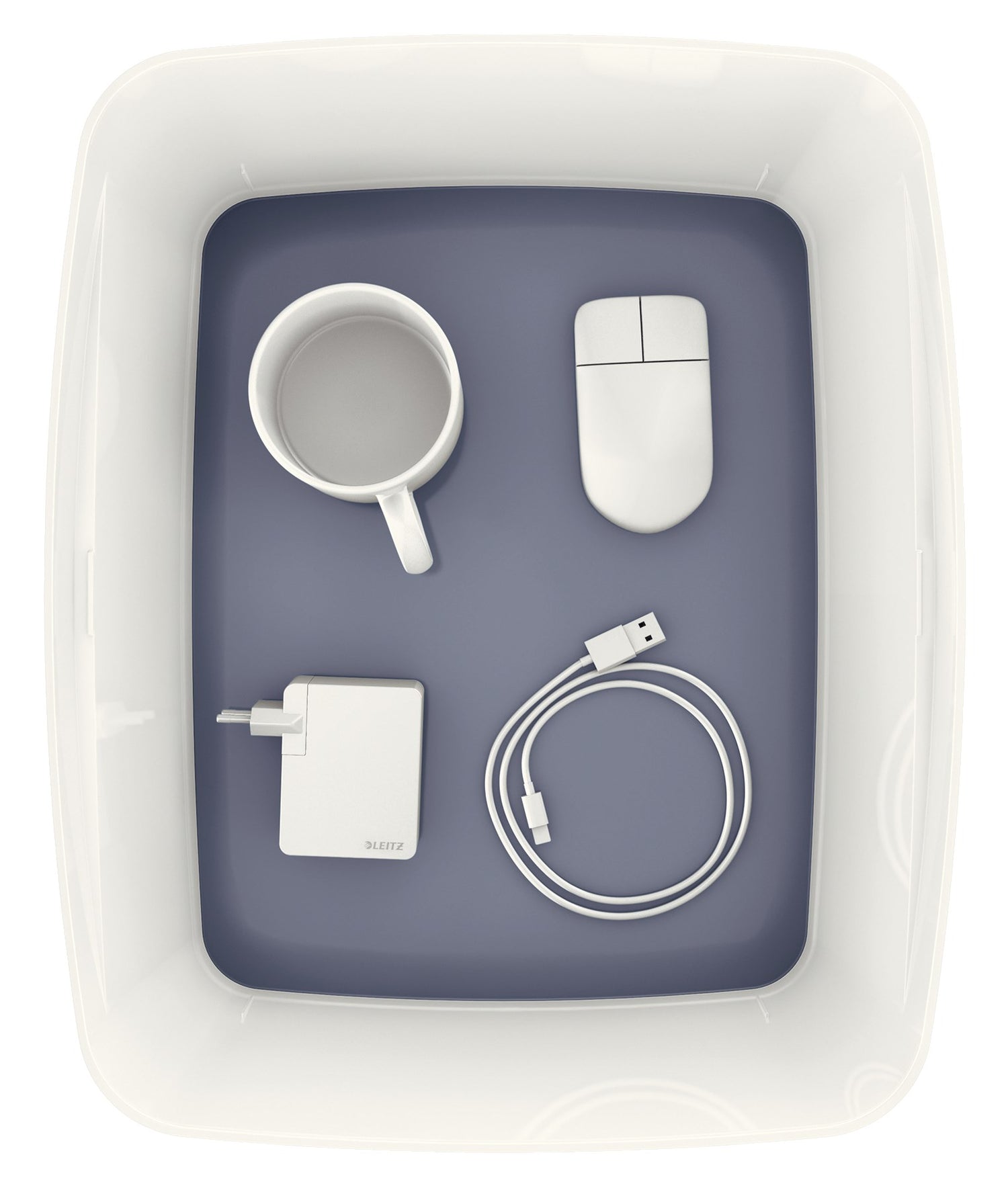 Ja, den passer perfekt sammen med andre produkter i Leitz WOW serien og kan kombineres med Small opbevaringsbakke eller Large/Small organiser bakker.