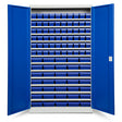 Skabet indeholder 60 stk plastkasser i størrelsen 400 x 115 x 100 mm og 35 stk plastkasser i størrelsen 400 x 230 x 100 mm.