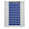 Med opbevaringsskabet ASPB får du en låsbar og meget overskuelig opbevaring af dine smådele. Etiketter for opmærkning af kasserne medfølger. Ønsker du yderligere opdeling af kasserne, bestiller du i tillæg tilhørende deleplader. Kapacitet pr. hylde er 80 kg, jævnt fordelt.