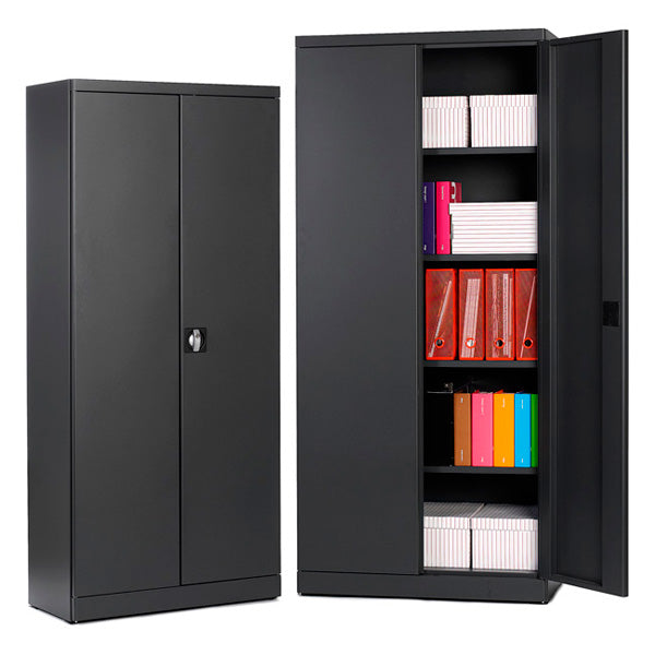 Konceptet TwinStore indeholder to helsvejsede og solide stålskabe til samme pris, som du normalt betaler for et! Begge skabe har solid lås og 4 flytbare hylder med en kapacitet på 50 kg. Det store skab er 1980 x 900 x 440 mm, det mindre skab er 1800 x 800 x 400 mm. Skabt til opgaven. Hvor vil du have din nye opbevaringsløsning?