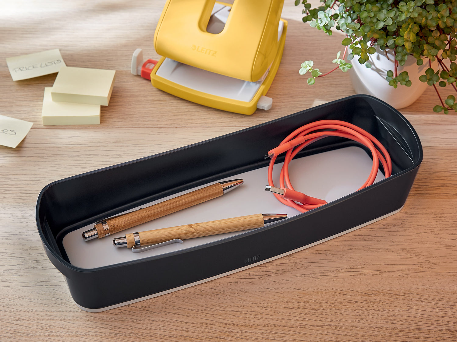 Ja, den er en del af Leitz MyBox modulære opbevaringssystem og kan kombineres med MyBox Small eller bruges separat på skrivebordet eller i skuffen.