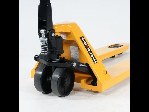 - Gaffellængde 1150 mm passer til standard EUR-paller. - Polyuretan-boggiehjul ruller støjsvagt, skåner gulve og hjælper over ujævnheder og ramper. - Kapacitet 2500 kg til håndtering af tunge læs.