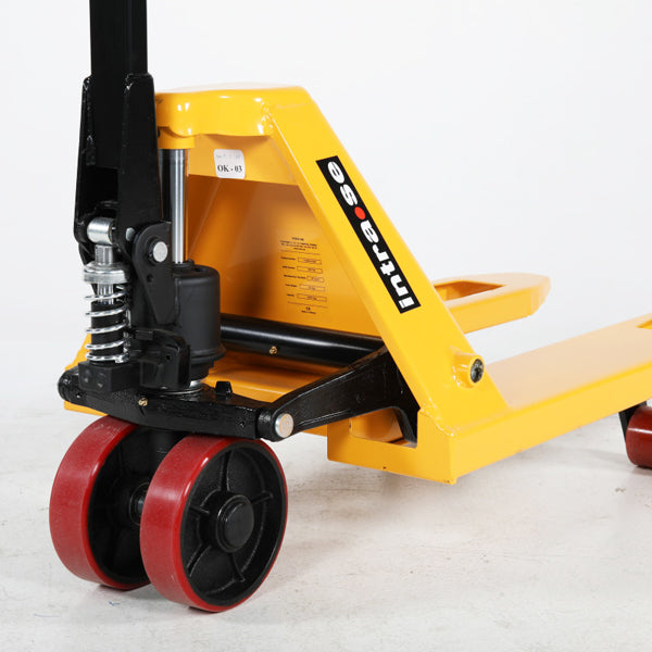 Palleløfteren har polyuretan (PU) gaffelhjul, som er støjsvage, bløde, non-marking og skånsomme mod gulve.
