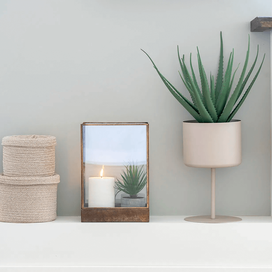 Sandfarvet planteopsats i stål Løft dine planter op i højden med denne stilfulde runde planteskjuler med opsats. Tilføj en smuk plante, og lad den blive et centralt element i din indretning. Planteopsatsen er ideel til både stueplanter og hængende planter, da den giver dem plads til at vokse og sprede sig. Skjuleren er fremstillet i sandfarvet stål. Den er ikke kun nem at rengøre, men dens farve tilføjer også varme til rummet. Diameter 21,5 cm. Højde 36 cm.Denne planteopsats er et perfekt valg for planterelskere, der ønsker at tilføje en stilfuld og funktionel berøring til deres hjem. Med sin diskrete elegance vil denne opsats ikke bare fremvise dine planter, men også tilføje et strejf af moderne æstetik til dit interiør. Så vent ikke længere, forbedr dit hjemme miljø med denne smukke planteopsats.