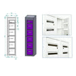 Skabet er lavet af lakeret stål med pulverlakeret lysegrå overflade RAL 7035.