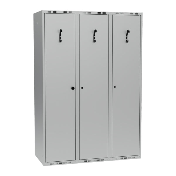 PR2 er økonomiversionen af vores PRO-skabe, leveret med T01 enkel ståldør og enkle tøjkroge ophængt på et ovalt ophængsrør. Lang tøjkrog på ydersiden af dørene og en kort på indvendig side af dørene.