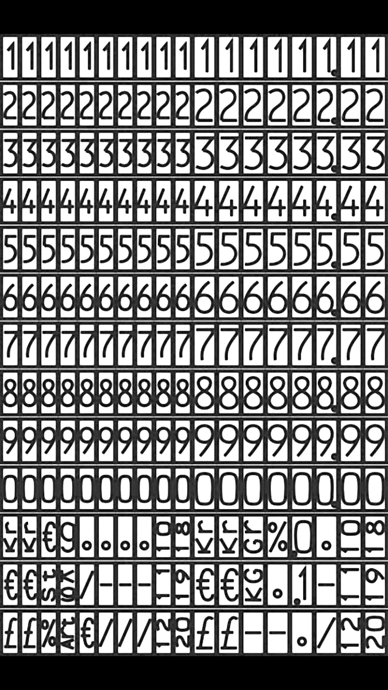Hvilke symboler kan price gun Avery 1826 printe udover tal?