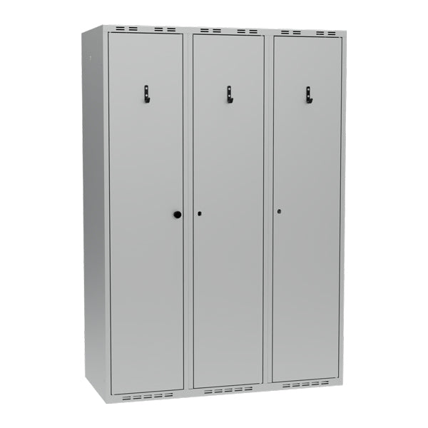 PRO er vores mest robuste garderobeskab til professionelle brugere, leveret blandt andet med T30 dobbelt ståldør, der tåler hårdere brug. Derudover har PRO-skabet ankerkroge på et stålrør i et robust ophæng. Udvendigt på dørene er der en kort tøjkrog, mens dørenes indvendige side har en lang krog.