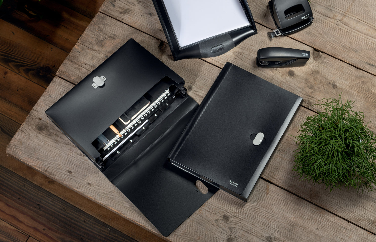 Iøjnefaldende, premium kvalitet PP projektmappe til daglig brug i skole, kontor og hjem med 5 rum. Lavet af 80% recirkuleret plast, 100% recirkulerbar og med Blå Engel miljøcertificering. Denne robuste og praktiske projektmappe komplementerer perfekt andre produkter fra Leitz Recycle-serien og er lavet til at holde. Moderne og stilfulde kontorartikler, som vil passe ind på kontoret og i hjemmet. - Fremstillet i 80% recirkuleret (post consumer) plast, 100% recirkulerbar og Blå Engel-certificering - Ideel til at styre mindre projekter, dele emner, organisere kundefiler og andre dokumenter per emne i forskellige rum - 5 ekspanderende rum og fast rum forrest til opbevaring af løse genstande eller notesbøger - 250 A4 ark kapacitet (80 g) - Sikker, genanvendelig lukning for sikker transport af dokumenter - Uigennemsigtigt materiale til beskyttelse af følsomme personlige data eller virksomhedsdata - Letvægt, langtidsholdbar og genanvendelig. Kun label - intet emballageaffald