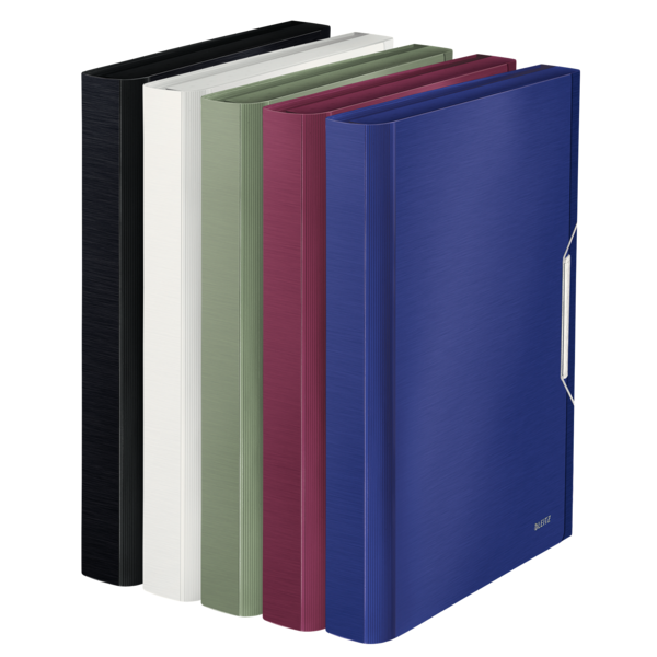 Innovativ, højkvalitets PP projektmappe med blød børstet finish og i en sofistikeret serie af farver - arktisk hvid, granatrød, celadon grøn, titan blå og satin sort. Ideel til organisering og opbevaring af projekter og dokumenter.