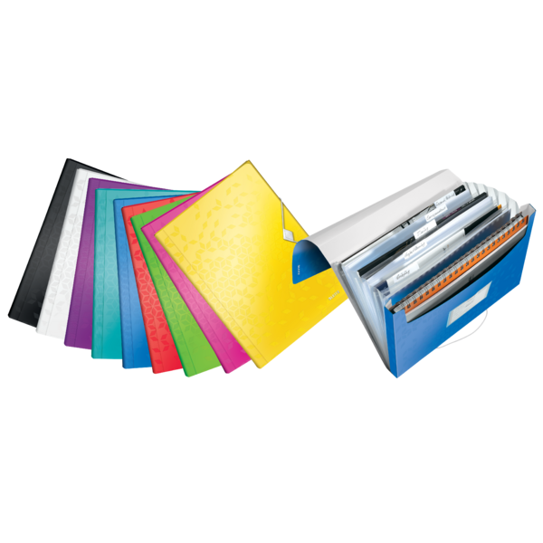 Højkvalitets, let PP projektmappe i levende WOW farver med stilfuldt geometrisk mønster. Ideel til sortering og organisering af dokumenter på kontoret, hjemme og på farten.
