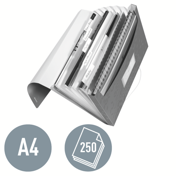 - Kan bruges med standard omslag, lommer og notesbøger
