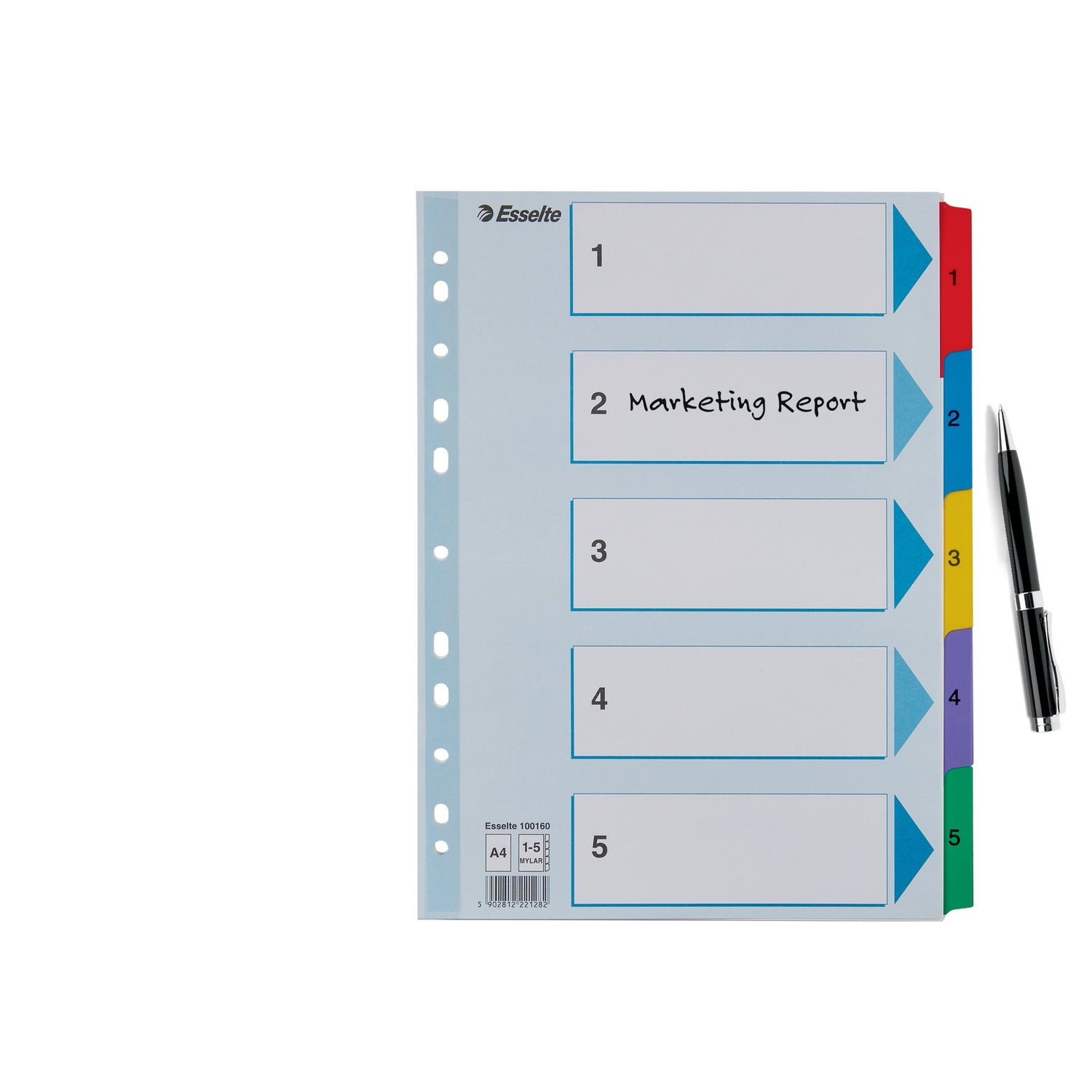 Holdbart register i klare farvekombinationer. Forblad har store felter til indholdsbeskrivelse- Stærke holdbare faner med Mylar forstærkning- Plastforstærkede holder på forbladet- 2 farvede faner printet 1-2 for nem sortering. Tal printet på begge sider.- 11 universalhuller- A4 format- Stærk 160 g karton